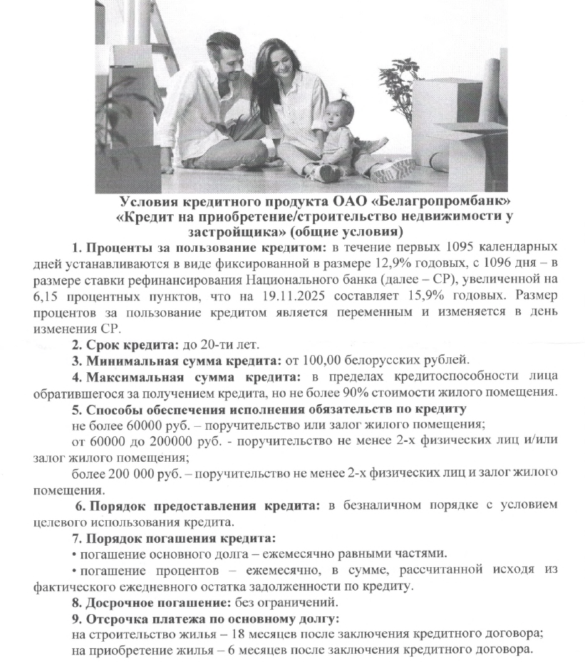 Белагропромбанк предлагает выгодные условия кредитования физических лиц на строительство и приобретения недвижимости для сотрудников ОАО “СДСК”