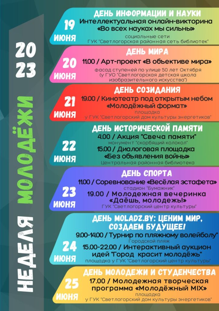 19 – 25 июня “Неделя молодёжи” 21/06/2023 Комментарии отключены Общие Прошлая новость Следующая новость