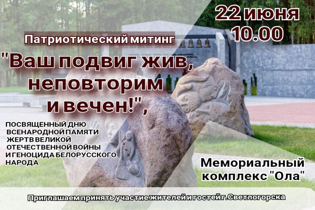 22 июня. День всенародной памяти жертв ВОВ и геноцида белорусского народа 21/06/2023 Комментарии отключены Общие Прошлая новость Следующая новость